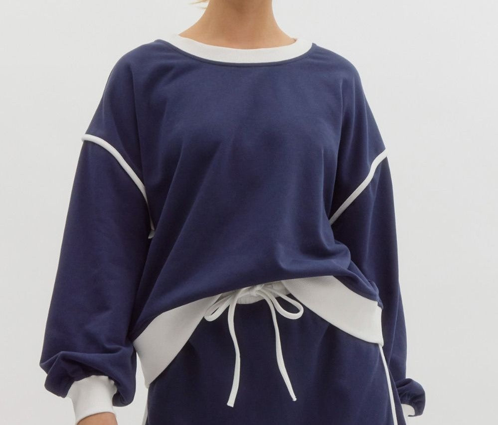 This solid round neck long sleeve top is perfect for any occasion. With its contrasting trim, it adds a stylish touch to any outfit. Made of a lightweight cotton-polyester blend, it is comfortable and non-sheer. Unlined for a sleek look, this top is a must-have for your wardrobe.
